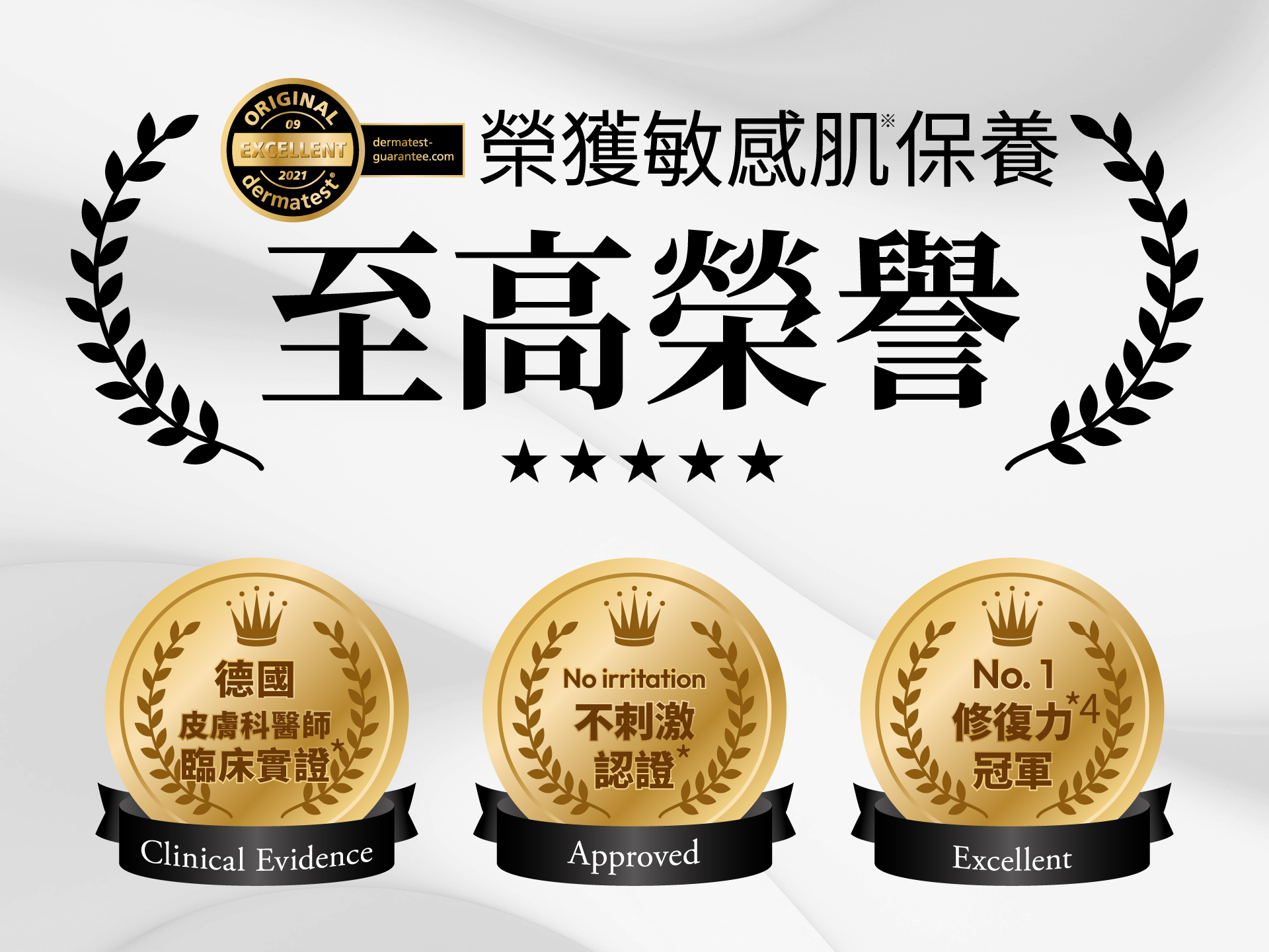 *經Dermatest德國皮膚科醫師進行敏感肌貼布測試,獲得Excellent等級「不具刺激性」。個人體質不同,建議敏感肌使用前取適量產品,在頸部或手臂內側進行敏感測試。
