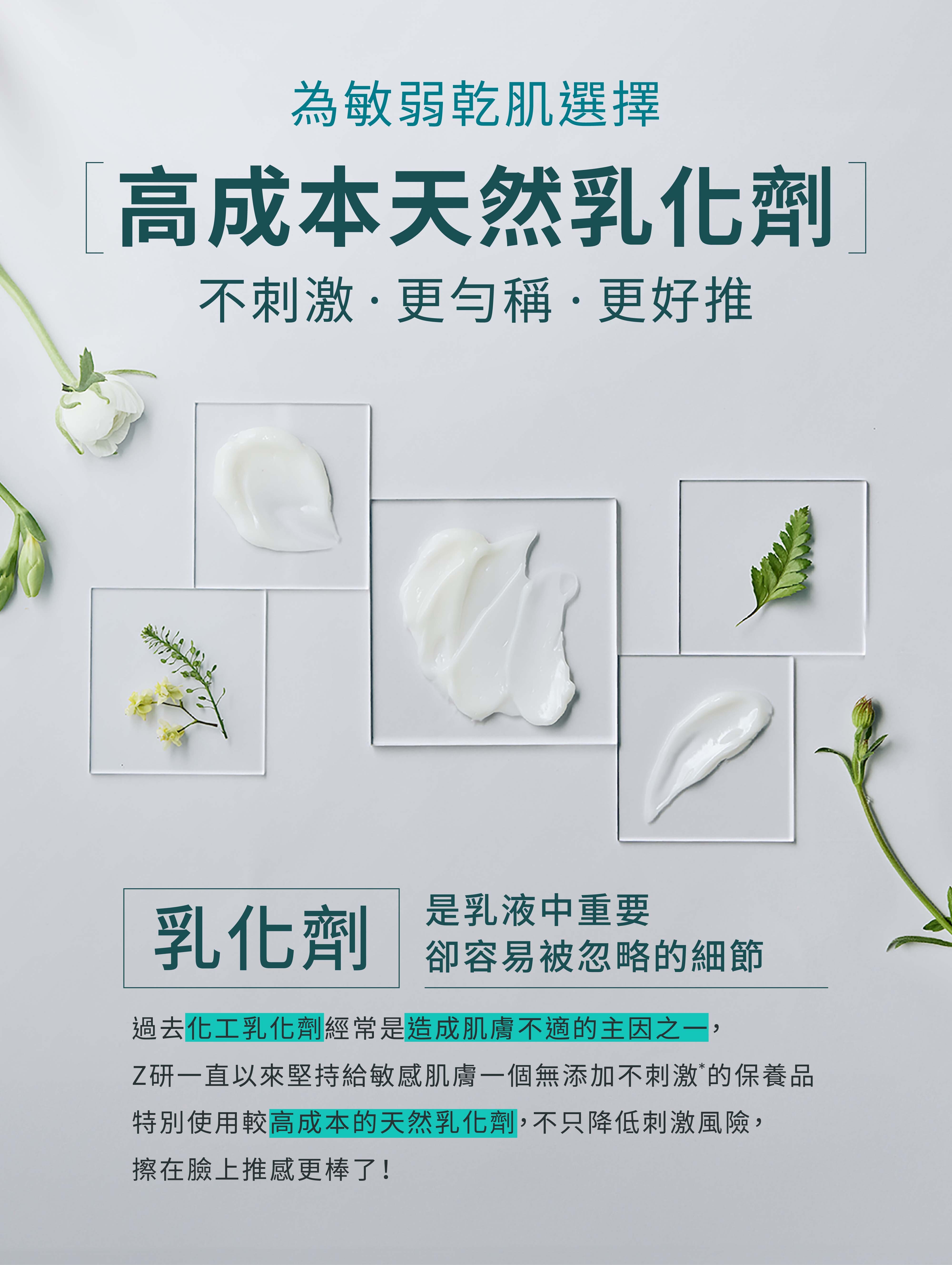 .使用更高成本天然乳化劑,取代化工乳化劑,大幅降低刺激